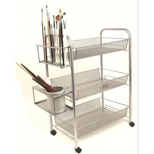 Artist studio on wheel G81103 (3-layer) is an art cart with 3 Trays. Durable and attractive stainless steel construction. You can easily put your papers, various brushes and other kinds of useful art tools. This item includes a canvas brush wash tube.