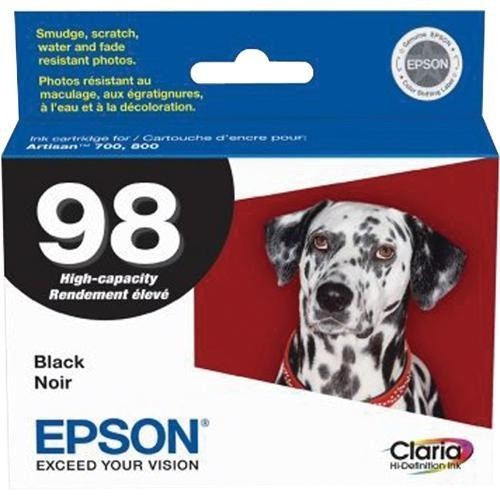 Epson T098120 (No.98) OEM Black Ink Cartridge High Yield   Compatible Printers /  Epson Artisan 700   /  Epson Artisan 710   /  Epson Artisan 725   /  Epson Artisan 730   /  Epson Artisan 800   /  Epson Artisan 810   /  Epson Artisan 835   /  Epson Artisan 837