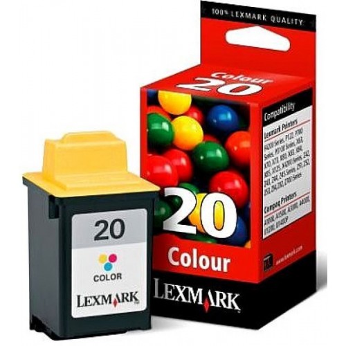 Lexmark 20 OEM Color Ink Cartridge (15M0120) Compatible Printers / Lexmark X83 / Lexmark 3200 Color Jetprinter / Lexmark 5000 Color Jetprinter / Lexmark 5700 Color Jetprinter / Lexmark 5770 Color Jetprinter / Lexmark 5770 Photo Jetprinter / Lexmark 7000 Color Jetprinter / Lexmark 7200 Color Jetprinter / Lexmark 7200V Color Jetprinter / Lexmark F4270 / Lexmark Optra Color 40 / Lexmark Optra Color 40N / Lexmark Optra Color 45 / Lexmark Optra Color 45N / Lexmark P707 / Lexmark X125 / Lexmark X4200 / Lexmark X4250 / Lexmark X4270 / Lexmark X63 / Lexmark X73 / Lexmark X85 / Lexmark Z11 / Lexmark Z31 / Lexmark Z41 / Lexmark Z43 / Lexmark Z45 / Lexmark Z51 / Lexmark Z52 / Lexmark Z53 / Lexmark Z54 / Lexmark Z54se / Lexmark Z705 / Lexmark Z715 / Lexmark Z73 / Lexmark Z82 / Lexmark Z85