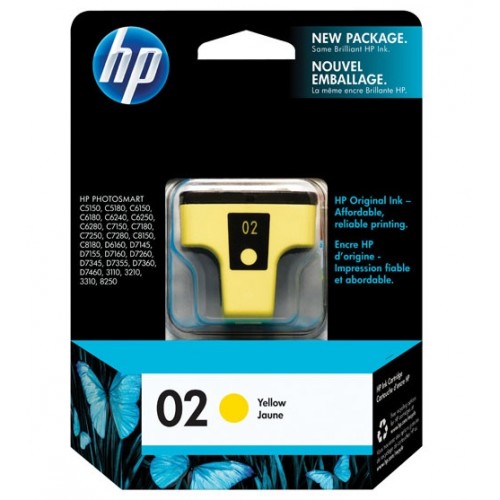 HP 02 C8773WN OEM Yellow Ink Cartridge Compatible Printers / HP Photosmart 3110 / HP Photosmart 3210 / HP PhotoSmart 3210v / HP PhotoSmart 3210xi / HP Photosmart 3310 / HP PhotoSmart 3310xi / HP Photosmart 8250 / HP PhotoSmart C5100 / HP PhotoSmart C5140 / HP Photosmart C5150 / HP PhotoSmart C5175 / HP Photosmart C5180 / HP PhotoSmart C5183 / HP PhotoSmart C5185 / HP PhotoSmart C5188 / HP PhotoSmart C5190 / HP PhotoSmart C6100 / HP PhotoSmart C6150 / HP PhotoSmart C6175 / HP Photosmart C6180 / HP PhotoSmart C6183 / HP PhotoSmart C6185 / HP PhotoSmart C6188 / HP PhotoSmart C6200 / HP PhotoSmart C6240 / HP PhotoSmart C6250 / HP PhotoSmart C6270 / HP PhotoSmart C6275 / HP Photosmart C6280 / HP PhotoSmart C6283 / HP PhotoSmart C6285 / HP PhotoSmart C6286 / HP PhotoSmart C6288 / HP Photosmart C7180 / HP PhotoSmart C7200 / HP Photosmart C7250 / HP PhotoSmart C7275 / HP Photosmart C7280 / HP PhotoSmart C7283 / HP PhotoSmart C7288 / HP PhotoSmart C8150 / HP Photosmart C8180 / HP PhotoSmart C8183 / HP PhotoSmart D6160 / HP PhotoSmart D7145 / HP PhotoSmart D7155 / HP Photosmart D7160 / HP PhotoSmart D7168 / HP PhotoSmart D7245 / HP PhotoSmart D7255 / HP Photosmart D7260 / HP PhotoSmart D7263 / HP PhotoSmart D7268 / HP PhotoSmart D7345 / HP PhotoSmart D7355 / HP Photosmart D7360 / HP Photosmart D7400 / HP Photosmart D7460